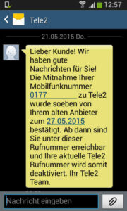 PIN und PUK waren auf dem Willkommensbrief von Tele2 zu finden. Die SIM-Karte wurde im Standard-Format inklusive Vorstanzung zum heraus brechen von Micro-SIM oder Nano-SIM geliefert. Die bei Buchung beauftragte Rufnummernportierung von Callmobile zu Tele2 wurde zu diesem Zeitpunkt noch nicht durchgeführt. Per SMS informierte uns der Anbieter darüber, dass die Rufnummernmitnahme erst knapp eine Woche später vollzogen wird. Bis dahin war der Mobilfunkanschluss über eine neue Telefonnummer erreichbar. Zum genannten Portierungstermin wurde die alte Telefonnummer dann problemlos übertragen – was unserer Erfahrung nach leider längst nicht bei jedem Anbieter so reibungslos funktioniert. Die vom Online-Händler Handybude zusätzlich versprochene Gutschrift wurde wie auf der Rechnung angegeben rund einen Monat nach Bestellung per Terminüberweisung ausgezahlt.
